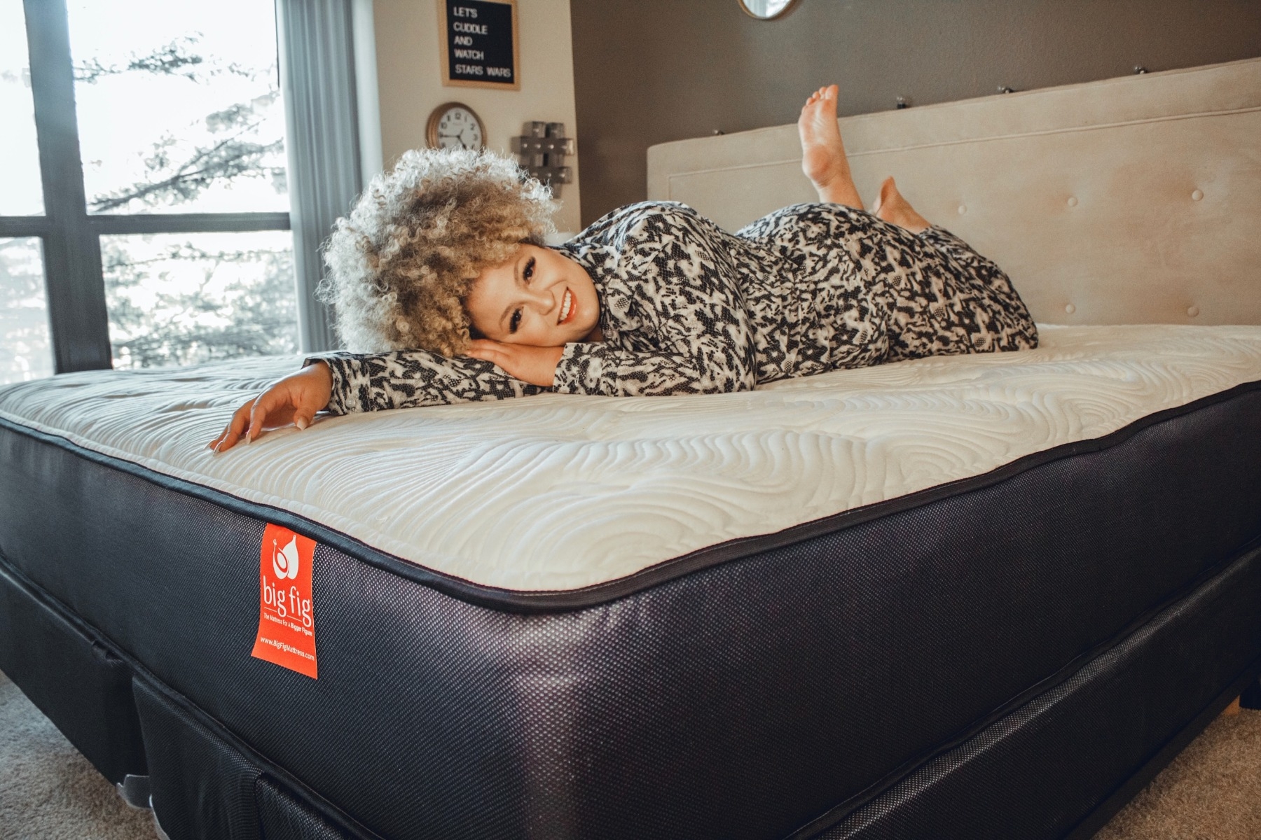 We also sleep fairly cool due to great cooling technology on the Big Fig Mattress, which helps the bed maintain a comfortable temperature. The individually wrapped coil system also isolates motion transfer very well and the mattress produces very little noise when bearing weight. When my hubs moves in the bed (and he does it a lot) it really doesn’t bother me. Even our intimacy as a couple is way more satisfying without worrying if the bed will really support us.