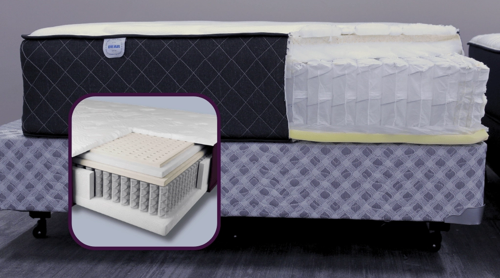 Once it’s all assembled, we hand-tuft each mattress to keep all the layers of materials secured, preventing dips, gaps, or breakdown. The Bear Hybrid doesn’t use tufts meaning that materials can shift and gap over time. But Big Fig Mattress goes the extra mile for heavier bodies because our founding family has been in the mattress business for more than 100-years. Gives us a bit of a leg up on Bear’s 25-years.