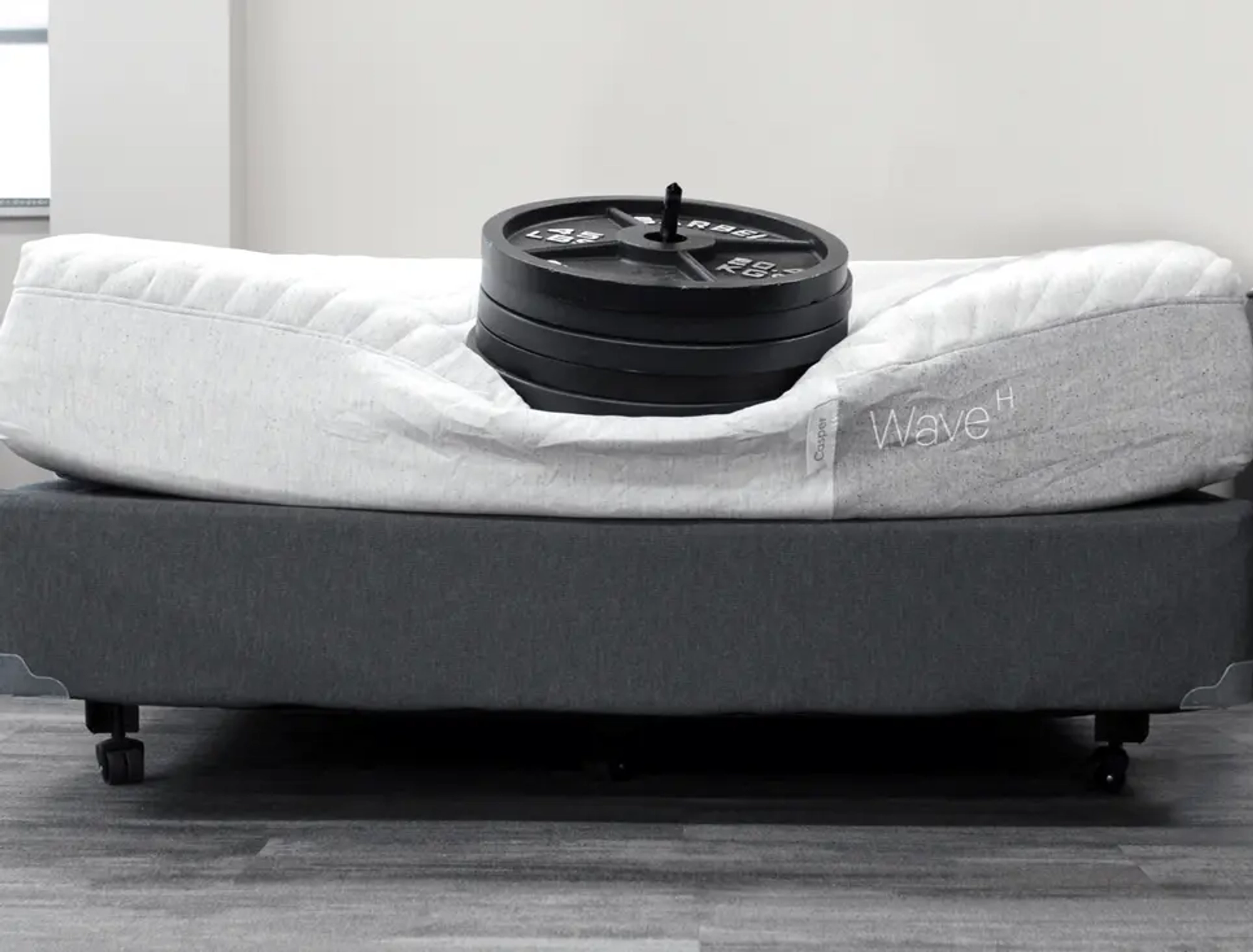 To test weight stress, we took regular 45 lb. weights and stacked them on top of each other to show what The Big Fig looks like when 270 lbs. is placed on the mattress surface.