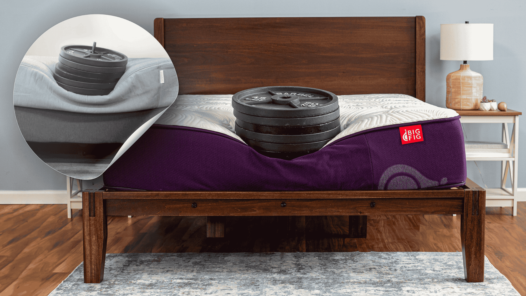 To test weight stress, we took regular 45 lb. weights and stacked them on top of each other to show what The Big Fig looks like when 270 lbs. is placed on the mattress surface.