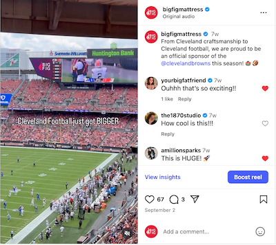 “We’re looking forward to kicking off this partnership with Big Fig, a Cleveland-founded company whose product will benefit the needs of our fans and players alike,” said Cleveland Browns Senior Vice President of Corporate Partnerships Erica Muhleman. “Their value in innovation, comfort, and well-being aligns perfectly with our commitment to supporting peak performance on the field and investing in the health and strength of Northeast Ohio.”