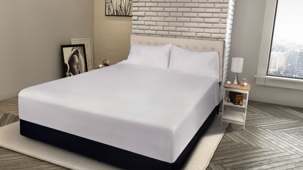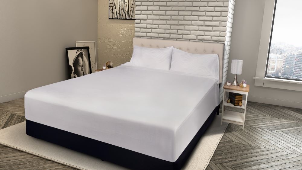 Start at the base of your bed, neatly tucking the bottom of the flat sheet completely beneath the mattress. Then take the bottom left corner of the sheet and tuck it under the mattress as well. Working your way towards the head of the bed, tuck the next several inches of flat sheet completely beneath the mattress.