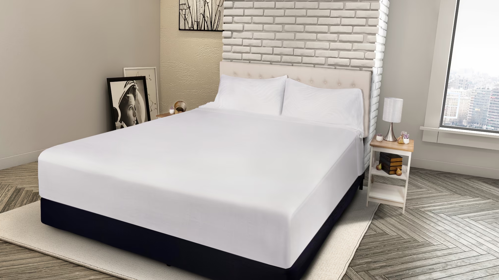 Start at the base of your bed, neatly tucking the bottom of the flat sheet completely beneath the mattress. Then take the bottom left corner of the sheet and tuck it under the mattress as well. Working your way towards the head of the bed, tuck the next several inches of flat sheet completely beneath the mattress.