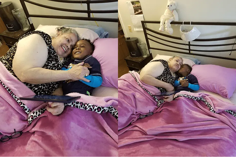 My mom’s favorite moments now are in bed. <laughs> At one time, she was afraid to even go into her bedroom or lay on her bed. Now she looks forward to going to sleep and has been sleeping well to the point where she seems more alert, refreshed and happy. She also loves spending time with her grandson on her new mattress, where she can read him stories, play games on her tablet and cuddle while watching TV.
